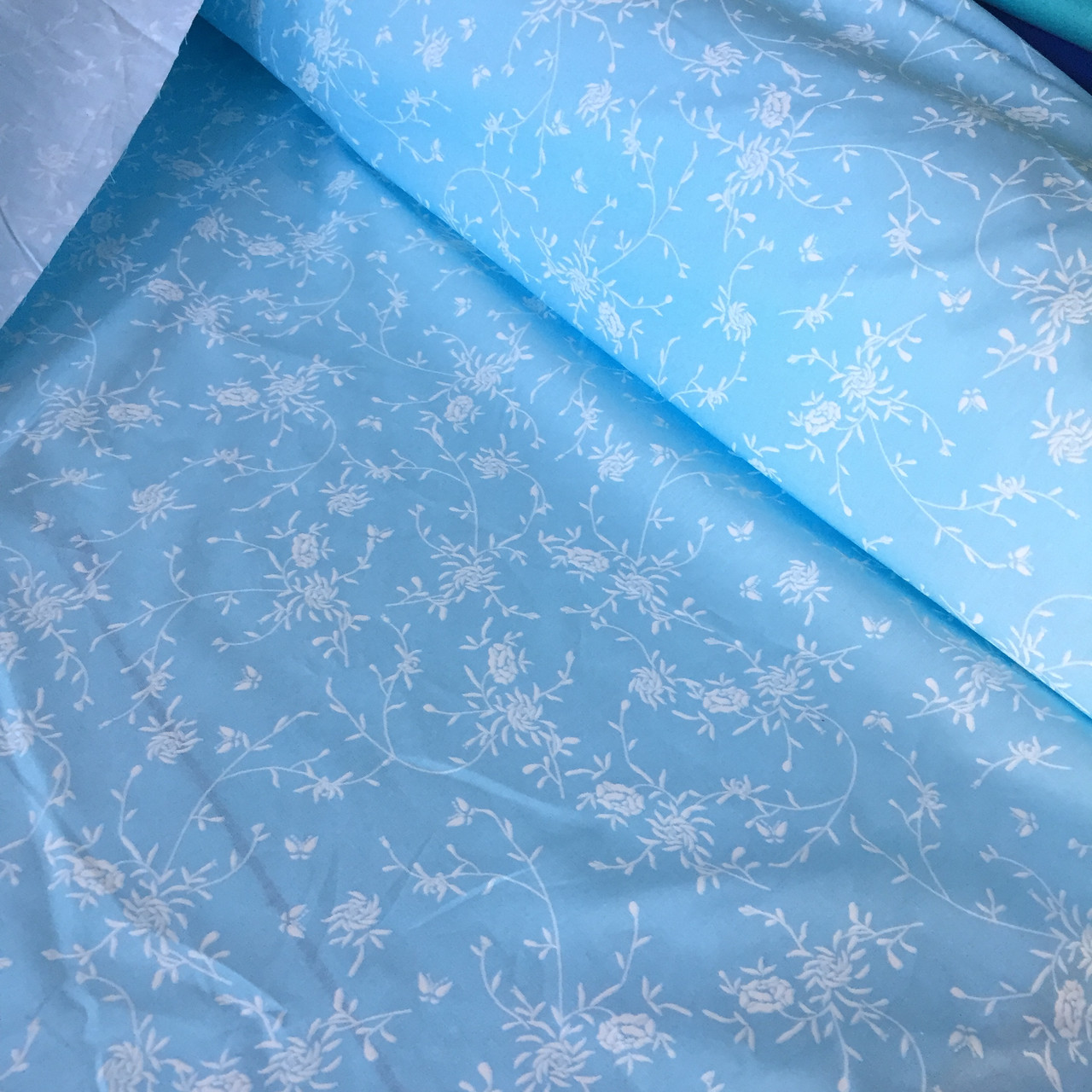 Поплін Люкс набивний з ніжною білою гілочкою на бірюзовому тлі. Молдавська тканина найвищої якості з гарною щільністю й дуже приємна на дотик.